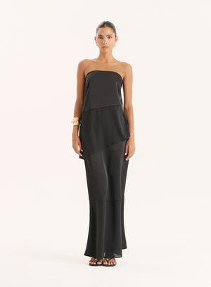 MarciaBlack Satin And Chiffon Bandeau Asymmetric Top