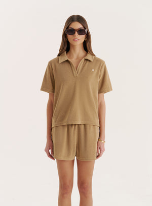 ZitaCamel Towelling Short Sleeve Polo Top