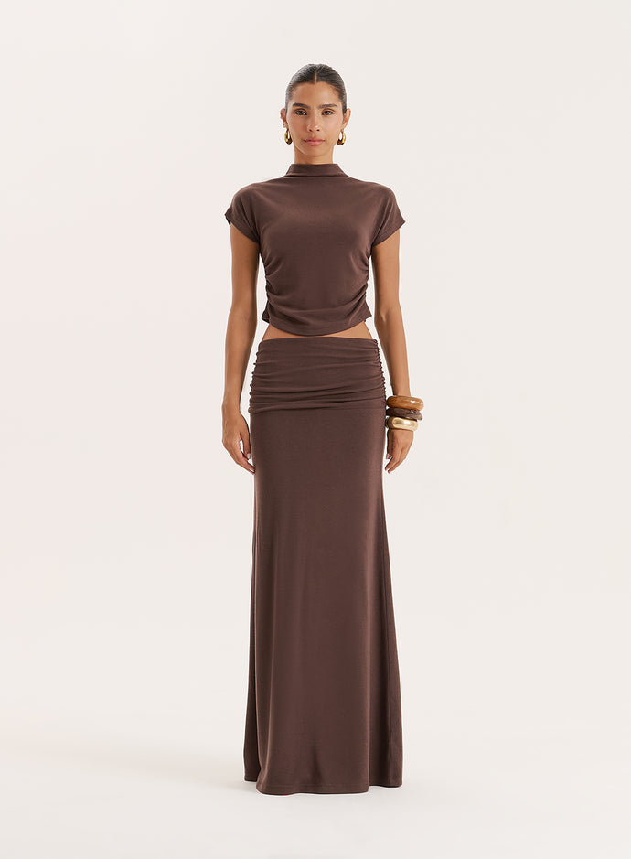 ElouisaChocolate Jersey Drop Waist Maxi Skirt