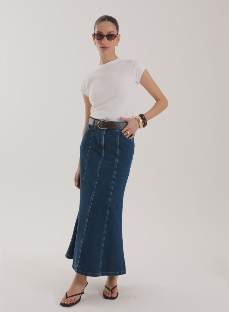 CooperIndigo Wash Panelled Denim Maxi Skirt